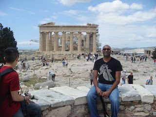 After a full day and night in the air, we arrived in Athens at 8:30 this morning. Sleeping on a plane sucks ass. Even when my dad is kind enough to drive up emergency Ambien (thanks dad–you spoil me) so we could have at least a fighting chance of sleeping. Well tell that to the freaking party crowd across the row from us. They yabbered and hooted all night long. Douchebags.