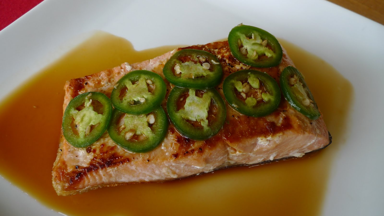 Arrange 1 fillet on each plate. Top evenly with jalapeno slices. Drizze about 2 tablespoons of the ponzu sauce over each serving. Let stand 10 minutes before serving.