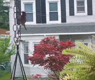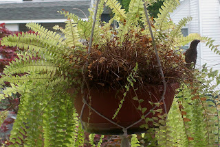 In the past few days, I’ve noticed a pair of birds flitting around the ferns I moved out to the porch last week. It kind of occurred to me that they were weirdly close to the house, almost as if they were scoping out real estate.